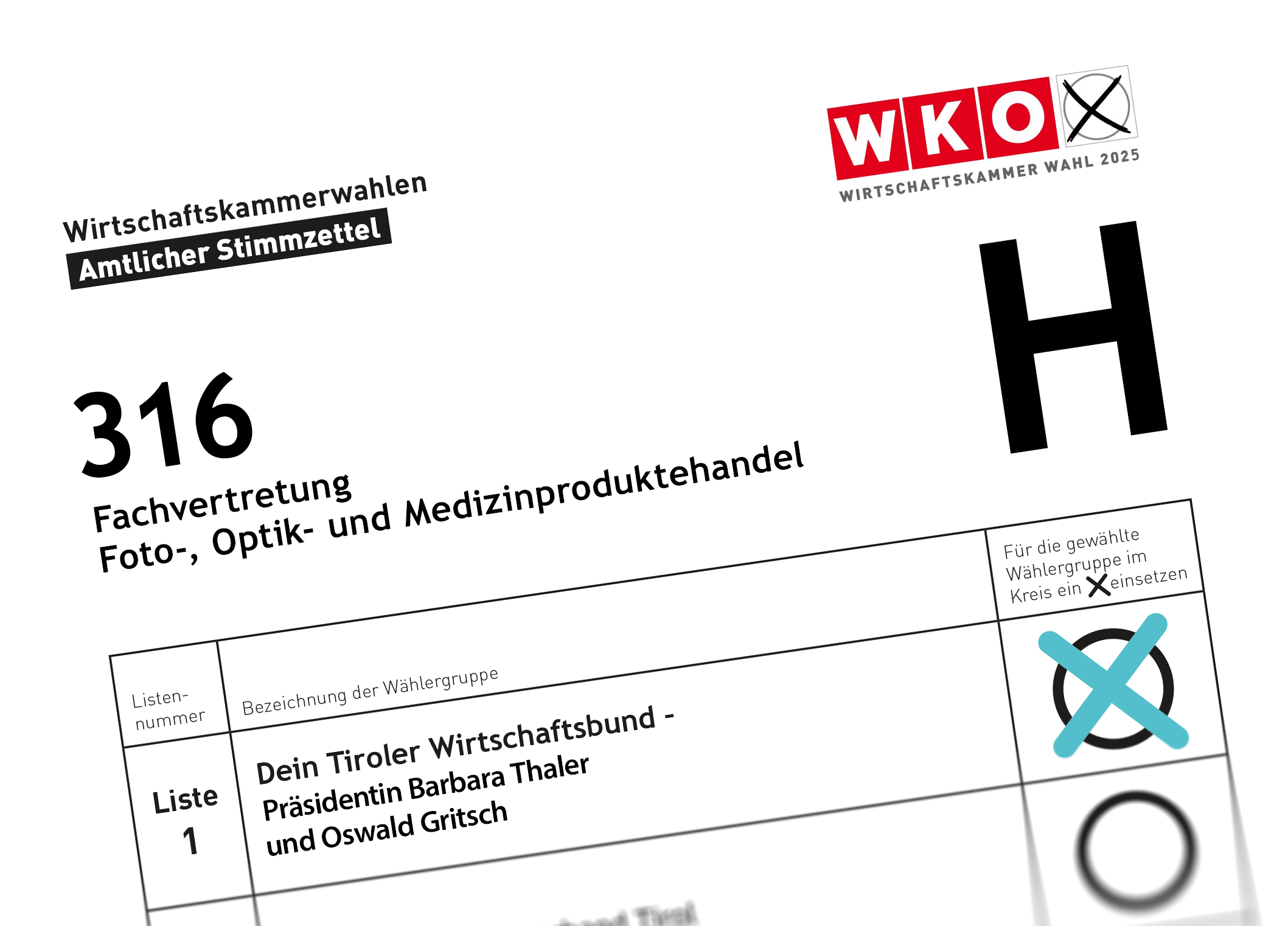 Hinweis: Laut Verlautbarung der Hauptwahlkommission der Wirtschaftskammer Tirol vom 4. Februar 2025 wurde in dieser Fachorganisation nur der Wahlvorschlag des Tiroler Wirtschaftsbundes eingebracht. Daher findet keine Wahl statt, und die BewerberInnen gelten mit dem Wahltag als gewählt.